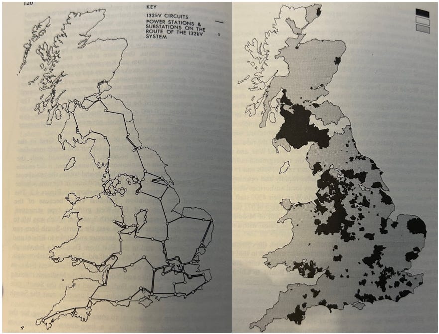 The CEB learnt from the failures of the interwar period, and knew that voluntarism and persuasion would not overcome parochialism. The competitive race of the 19th century had led to deep mistrust between companies and municipals, and between municipals in different areas. From 1919-1926 the British state tried to rationalize the system through the Joint Electrical Authorities; fifteen regional entities that would try to persuade municipal and company undertakings to interconnect on a voluntary basis. Their only tools were consultation. The 1919 Act gave them the pathetic right to ‘designate electricity districts after holding a local enquiry and providing ample opportunity for advice and consultation with all parties concerned’. In short, the regional JEAs could only integrate within areas if the utilities decided to do so. The 1920s were a story of interminable public enquiries and deadlock. Companies feared interconnection would mean being gobbled up by larger municipal undertakings, and municipal utilities feared integration would lead to higher prices due to the companies needing to make a profit.