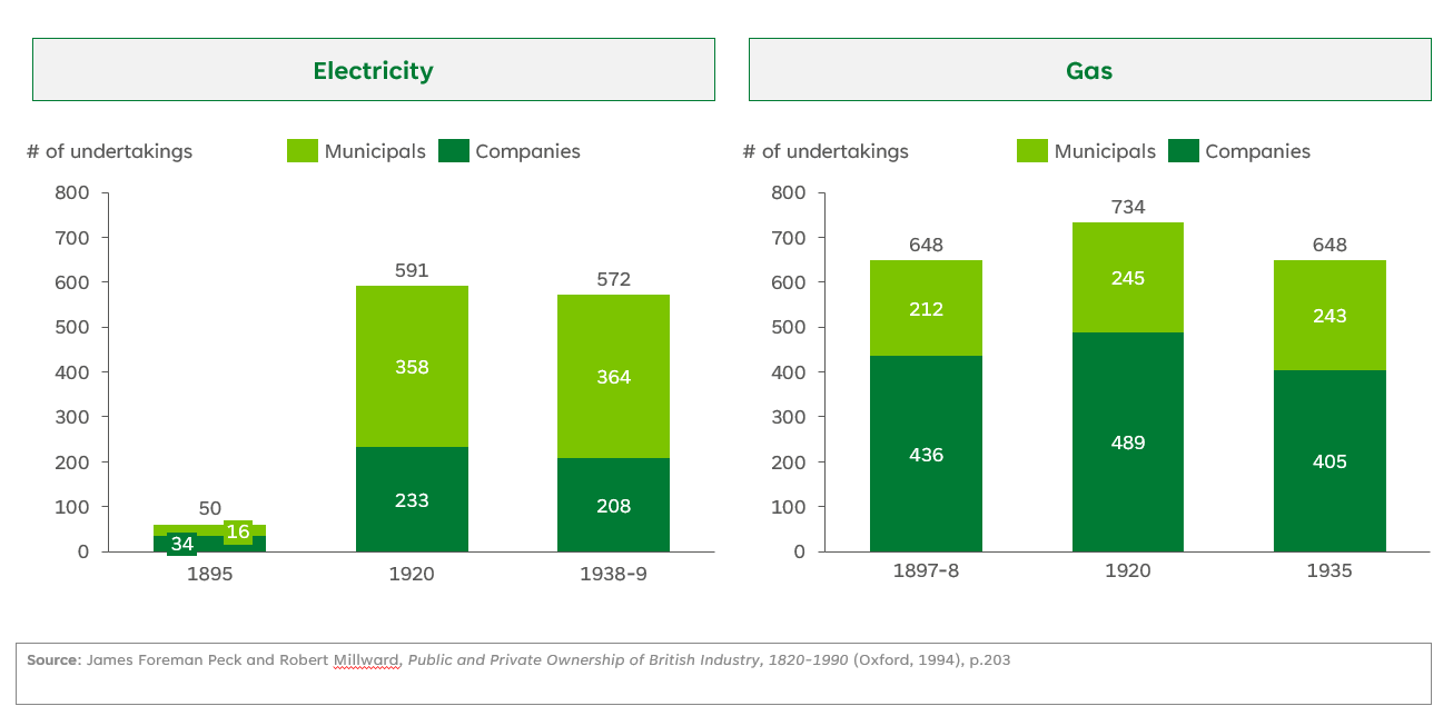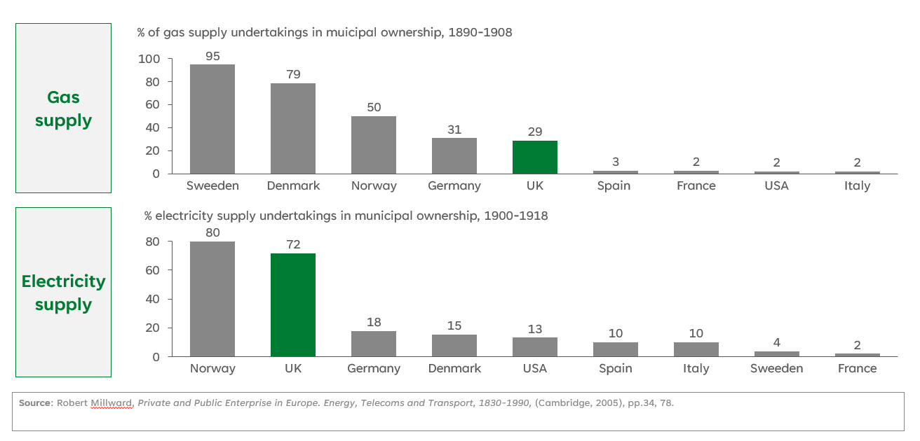 Figure 2: Municipalization of Gas & Electricity in the UKs vs other countries, 1890-1918