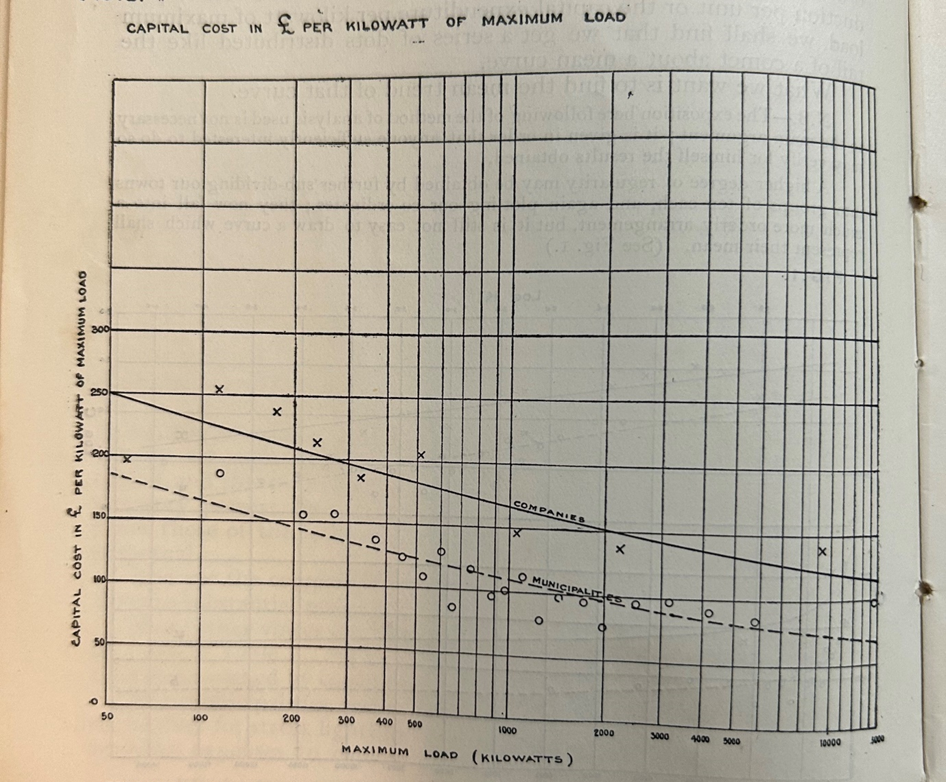 Figure 3: Ashmore Baker’s 1913 ‘scale vs performance’ curves for companies and municipals.